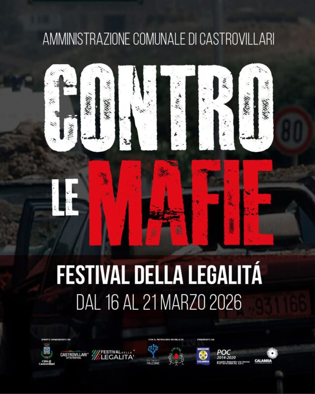 CASTROVILLARI :: 07/03/2026 :: Studenti, istituzioni, cittadini. Tutti insieme per dire no ad ogni forma di criminalità organizzata e alla sua subcultura. Anche quest’anno Castrovillari è pronta per il Festival della Legalità – Contro le mafie, uno tra i più importanti e identificativi eventi della città del Pollino che, dal 16 al 21 marzo, offrirà incontri, dialoghi e riflessioni in una programmazione ricca e articolata.