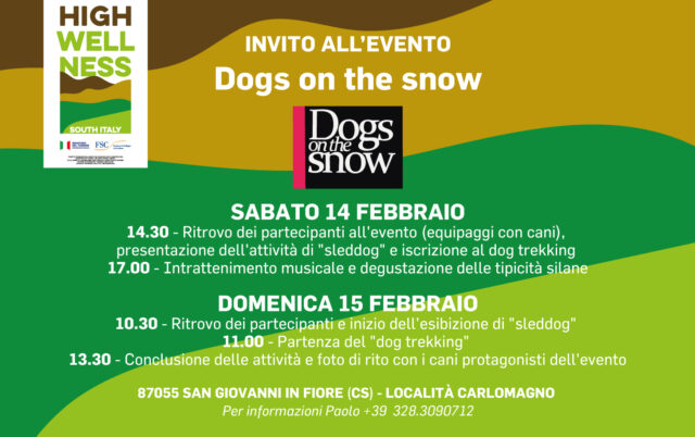 SAN GIOVANNI IN FIORE :: 12/02/2026 :: L’aria frizzante della Sila, il candore della neve e l’energia contagiosa dei cani “nordici” diventano gli ingredienti di “Dog on the Snow”, la due giorni firmata High Wellness South Italy in programma il 14 e 15 febbraio presso il Centro Carlomagno, nel territorio di San Giovanni in Fiore. Un appuntamento pensato per chi ama la montagna, la natura e la compagnia a quattro zampe, con attività che uniscono sport, socializzazione e gusto.